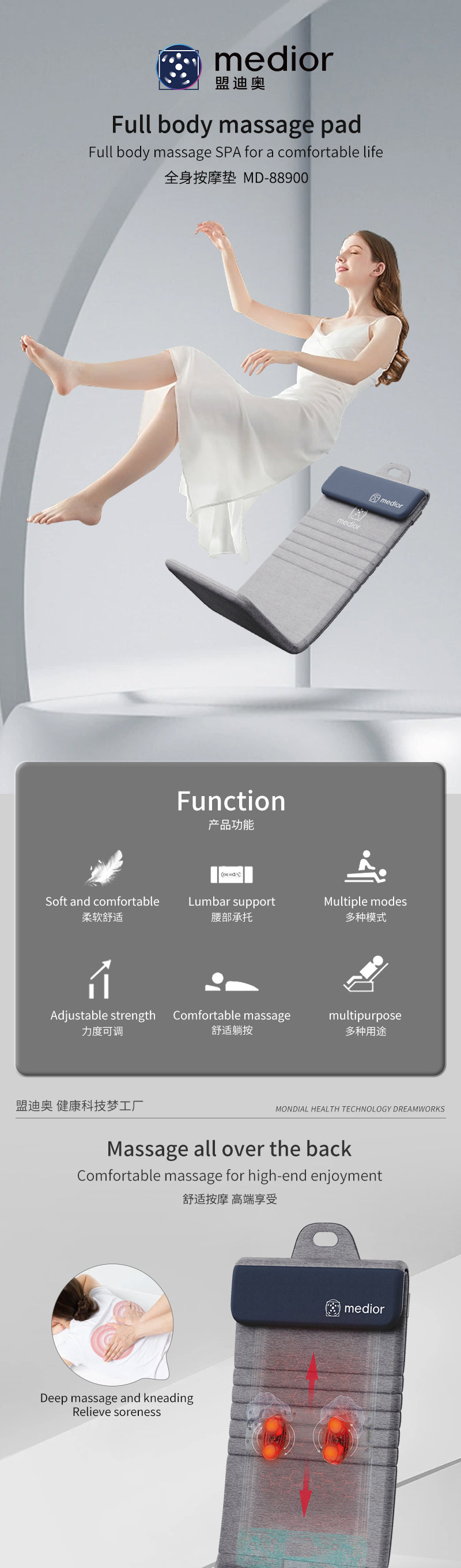 3、力度三檔調節,定點按摩,腰背按摩、臀腿按摩、全背按摩模式選擇